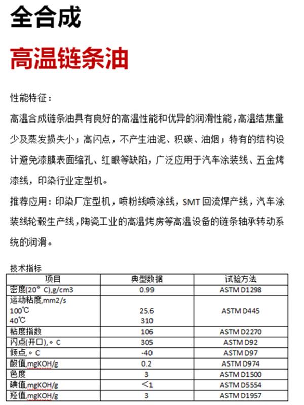 廈門威馬工貿(mào)有限公司位于美麗的花園城市-廈門市同安區(qū),公司專營(yíng)合成高溫油脂系列產(chǎn)品。產(chǎn)品分為:高溫鏈條油、高溫潤(rùn)滑脂、高低溫潤(rùn)滑脂等系列油品。廣泛應(yīng)用于:定型機(jī)、噴涂/噴粉、巖棉等高溫潤(rùn)滑設(shè)備,本品無煙,無殘?jiān)瑢儆谌铣筛邷赜拖盗校杉臉釉囉茫L(zhǎng)期服務(wù)全國(guó)客戶。